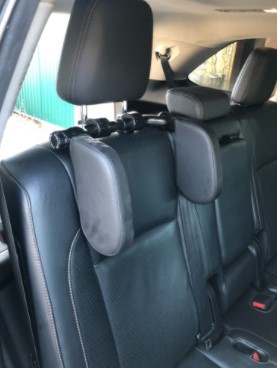 This thing is great!! I finally pulled the trigger and bought one for my 6 yr old and 10 yr old to use on a car trip we’re taking this weekend. I have a Ford Explorer, 3 kids in the second row, 1 cart seat. My 6 yr old and 10 yr old are going to use this between them and then the carseat is on the other side to use as a headrest. They also have those neck pillows, but they don’t like to use them for some reason. I’m so glad I finally got this. It looks really nice, very easy to move into any position and fits snug and tight on the headrest. My husband tried it out last night and approves as well.