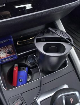 Measuring 4.3 x 3.4 x 3.2in / 110 x 88 x 82mm (weight: 9.6 oz), our charger fits standard vehicle cup holders for a snug fit. Simply plug in the port adapter to power up the cup!