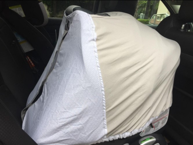 I absolutely love this car seat cover! It fits perfectly to my Chicco car seat. Lightweight, breathable fabric. So much better than the Muslin blankets that I used to use to cover the car seat!