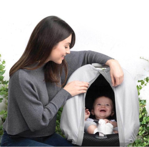 What a great purchase! My baby has a really strange reaction to the sun – he often sneezes when the light’s too bright, which makes our walks harder and not that long and enjoyable. So I was looking for something that would solve that problem. And this is the one! Our picnics are so much better now: the baby’s safe and I can always check up on him, the opening is wide enough for that. It fits perfectly on my carrier and doesn’t slip throughout the day. The Velcro is soft yet strong, so the baby doesn’t even hear it being opened. Washes easily, doesn’t lose its shape.