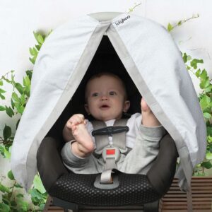 This is a very good quality canopy. I like that its fitted and snug around the carseat. I had a Summer Infant carseat canopy 4yrs ago and loved that it hugs the carseat and doesn’t blow around in the wind or lift. It’s secured by a button in the front on the bottom and easy access velcro strips on the front to keep an eye on your baby. The material of this Lulyboo canopy is really durable. I have 2 canopies on 2 different size car seats proving to fit one than one size car seat! It also washes well in washing machine, I’d recommend a delicate mode, even though the material is strong.