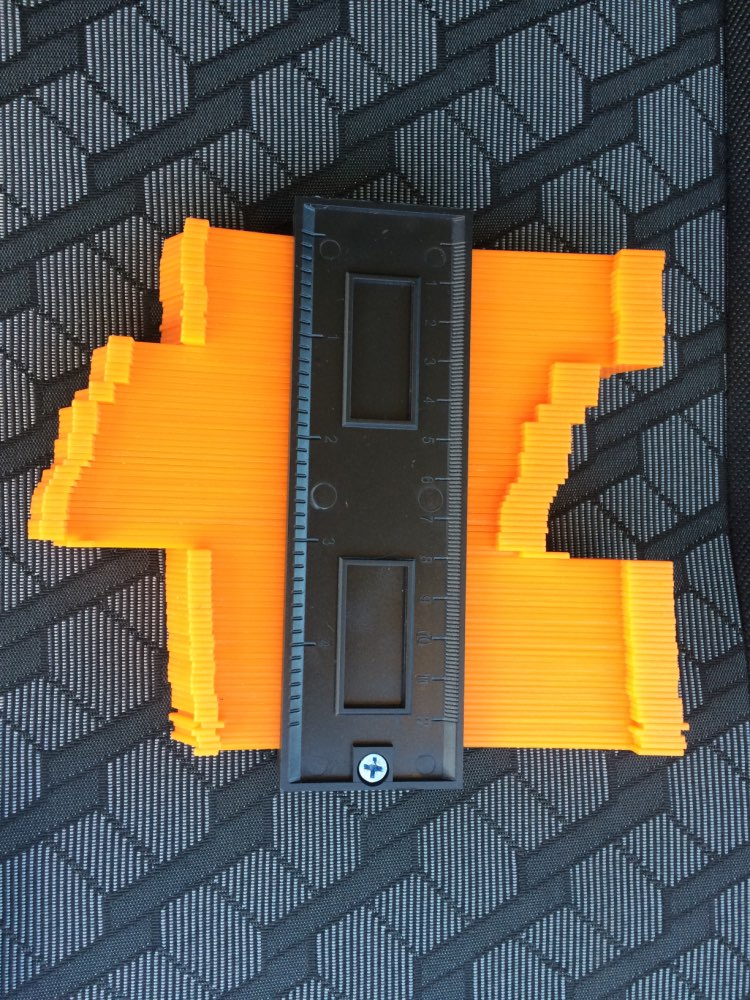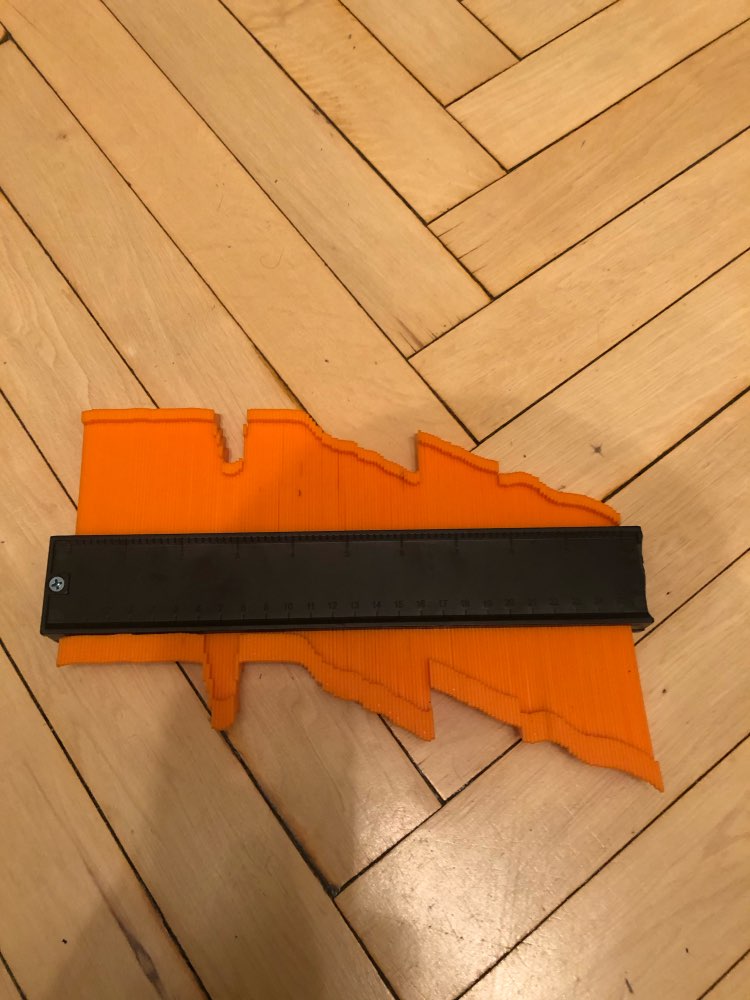 I saw an ad for something similar, but at 4x the price. I ended up going with this one to see if it will do the job. Its really great for laying floor down around door frames and pipes. This helped me make accurate cuts and I am happy with the outcome of my flooring project – one thing hwoever is, that the bars are rather stiff and hard to adjust. You will need some force to shape it and it wont work on soft objects… at least not mine. I am thinking to maybe try oiling the center to make the bars slide easier. Have not done it yet though!