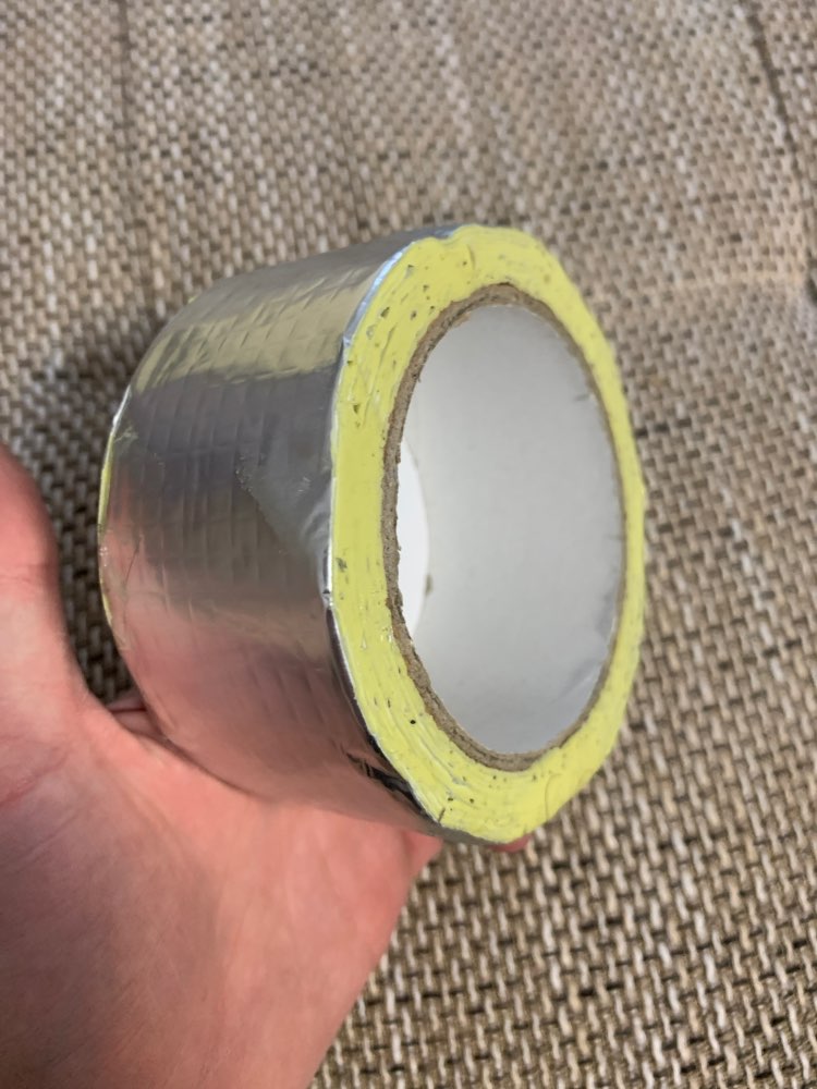 Not much to say. It’s aluminum tape. The glue holds up great in all weather. It seems to bond to just about anything. I’ve used it to hold extension cords in place, taped up against the side of a trailer. I’ve used it to hold aluminum siding in place while working alone so I can then secure it with screws. (You then remove the tape.) I’ve used it plug holes in aluminum rooves, and it keeps the rain out. (It’s rooves not roofs, like wives, knives, and lives.)