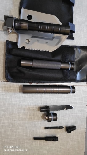 Great camping/compact shovel. Very sturdy. The accessories are good and the shovel itself is great. I Would have given it 5 stars. I am impressed with the shovel, overly thrilled with the other accessories (knife, fire striker)