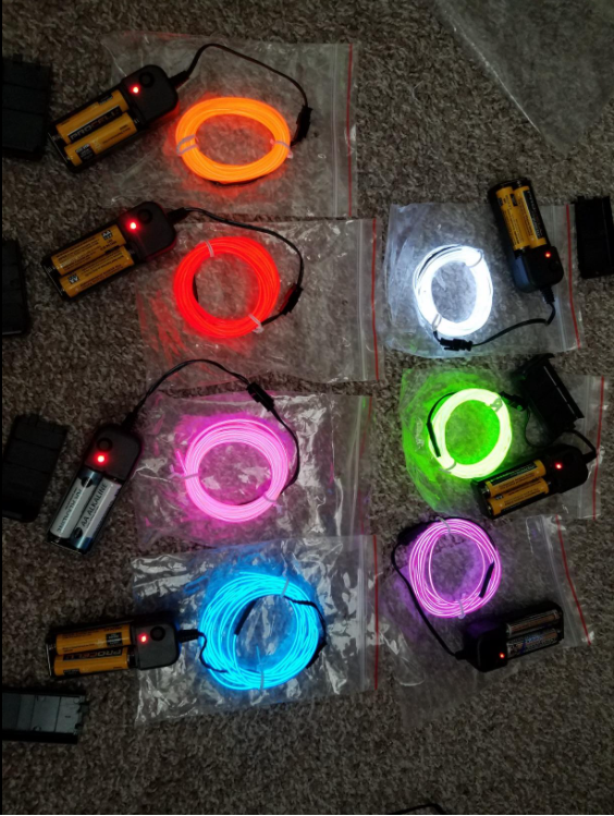 These are great! I used them to make faux neon signs for my friends for Christmas. I bent a piece of wire into their names, and then I hot glued the EL wire to that. They’re true to color, bright and and easy to work with. They do make the buzzing sound that I’ve seen other people mention in their ratings, but it is really only noticeable if you’re right by the item when it’s turned on.