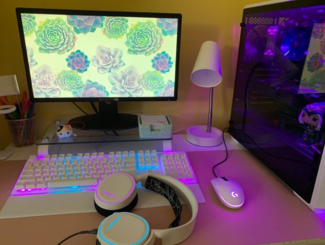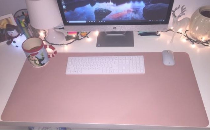 Now, comes in the mousepad. This mousepad is so beautiful. I got the pink one and I absolutely love it. It takes up almost half my desk and covers nearly every single horrible memory I have on the surface of white wood. It makes my desk look brand-new.