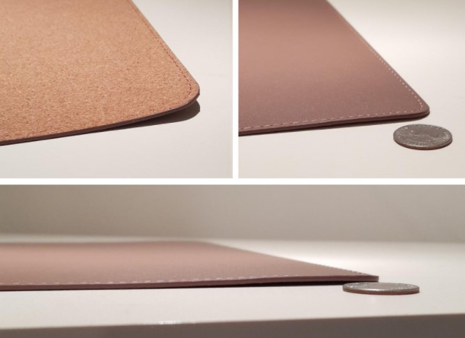 Note that there are two slightly different mats being advertised here. One version has PU on both sides (either the same or different colors), and the other type is PU on one side, with cork on the other. The cork version doesn’t come with a carrying strap, and it also has a stitch (entirely decorative) around the perimeter that doesn’t appear to be included on the dual PU type.