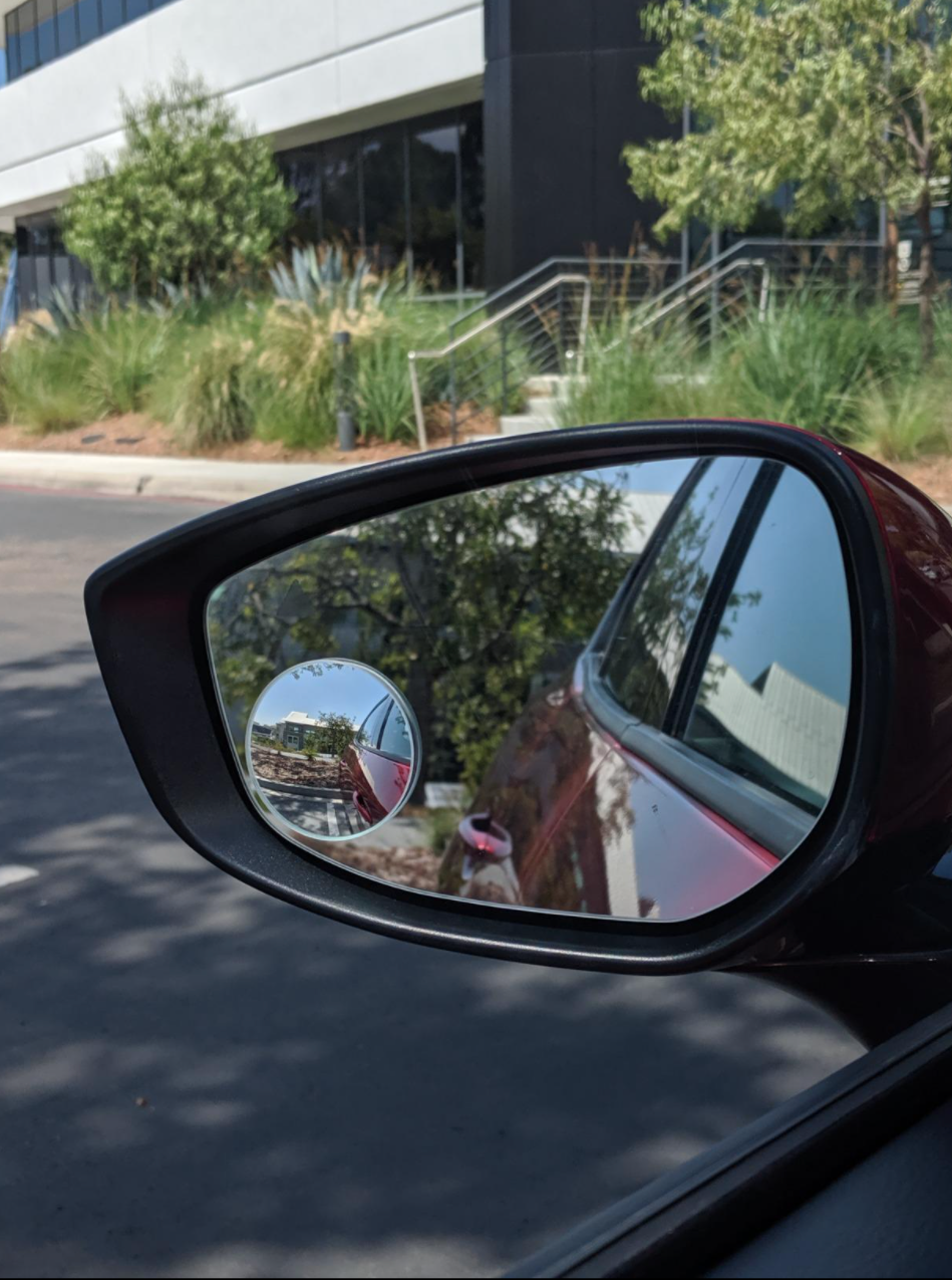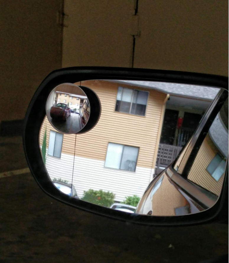 These blind spot mirrors are super helpful with parallel parking, blindspots and seeing if you are in between the lines of the space you parked in. Love them