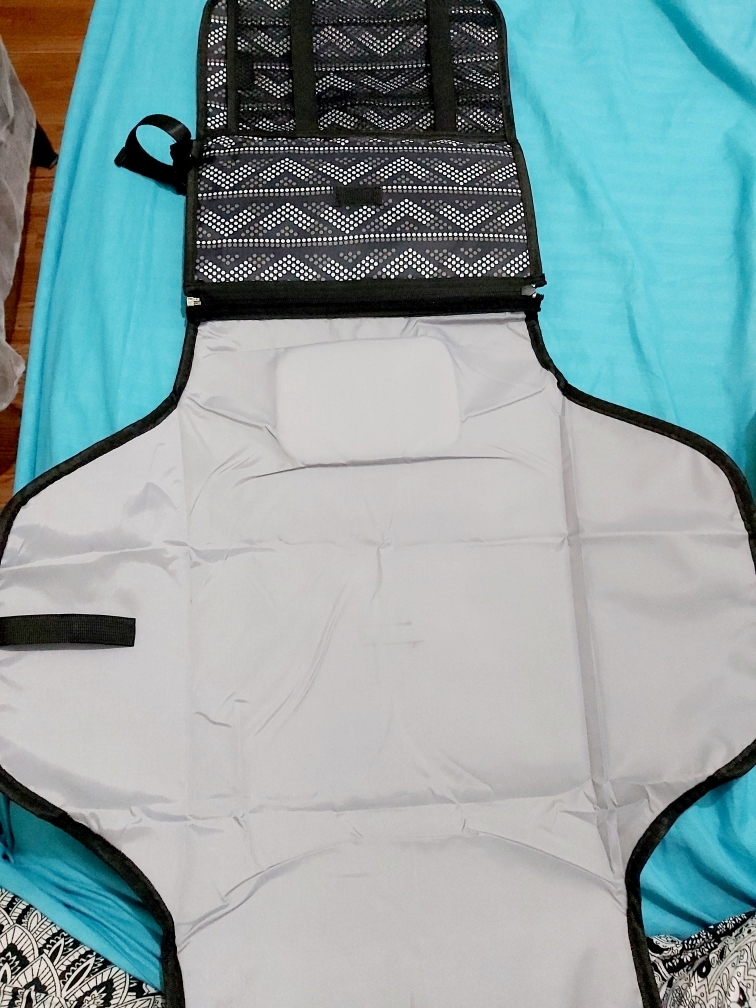 This is a great pad! Soft, wipeable, with handy pockets. It’s bigger than I realized. I do wish it folded up one more time because it’s not a very convenient size to just grab and take on a quick trip.